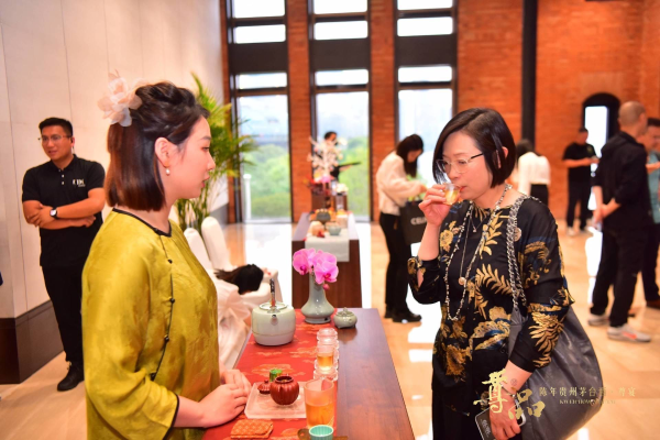 活动现场布置别出心裁,三面环形的舞台形状,长条摆桌的美陈设计,打造出独具茅台特色的品饮场景。伴随着“呦呦鹿鸣”的吟唱,尊品茅台系列产品缓缓登场。活动中,通过文化展陈、评弹表演、品牌故事分享、尊品品鉴等环节,将茅台文化、上海味道与酒文化完美融合,集中力量打造极具视听享受的文化盛宴和色、香、味、格的多维度美酒品鉴,吸引到场嘉宾纷纷打卡留念。