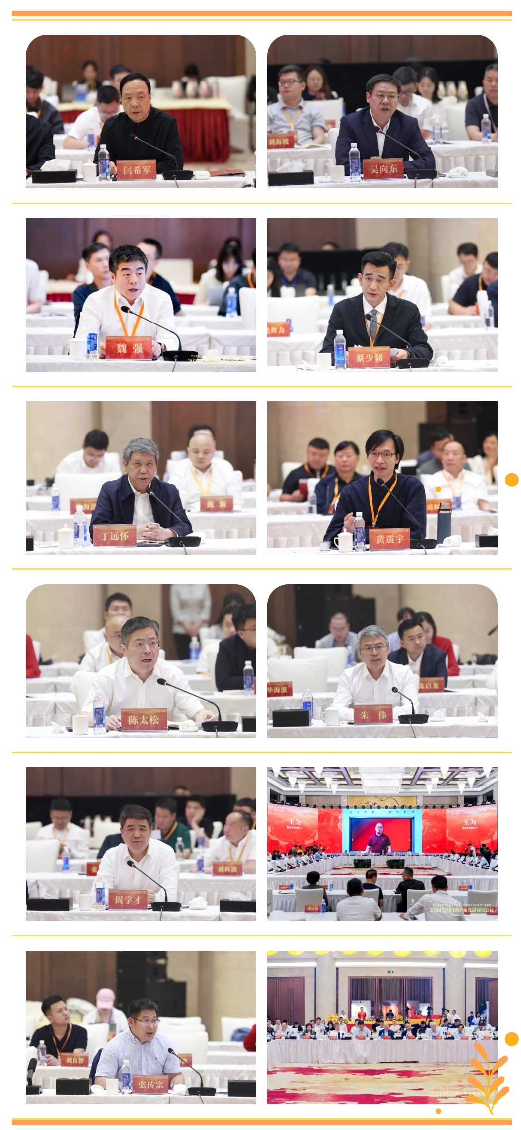 圆桌会现场,国台酒业集团终身荣誉董事长闫希军,贵州珍酒酿酒有限公司董事长吴向东,金沙酒业董事长魏强,贵州董酒股份有限公司总裁蔡少韧,贵州钓鱼台国宾酒业有限公司总经理丁远怀,小糊涂仙酒业公司董事长、总裁黄震宇,贵州贵酒集团有限公司董事长陈太松,贵州醇酒业有限公司董事长朱伟,贵州安酒集团有限公司总裁周学才,贵州肆玖酒业有限公司董事长张传宗,酣客酱酒创始人王为等就贵州白酒如何立足新阶段、把握新机遇、构筑新优势,谈认识、谈思路、谈举措,共同探讨交流贵州白酒高质量发展大计,积极为推动贵州白酒高质量发展建言献策。