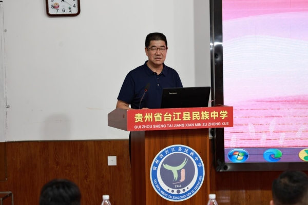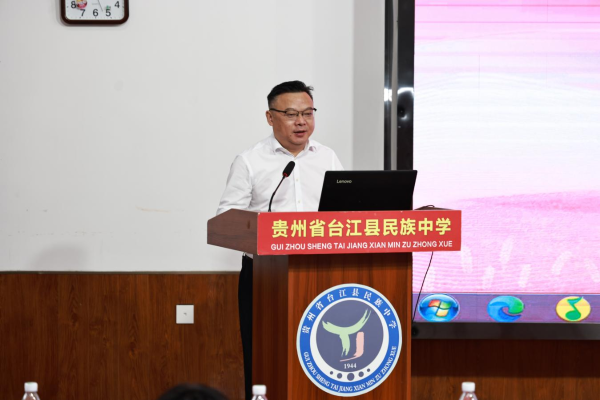 贵州茅台公益基金会理事长卓玛才让,黔东南州教育局局长曾武松出席捐赠仪式并讲话。