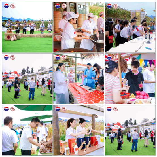 随后嘉宾们步入精彩纷呈的红缨市集,也拉开了此次活动的序幕。红缨市集以茅台和农耕文明的发展为脉络,划分为“高粱红”“丰收酿”“富农情”“乡村兴”四个区域。在“高粱红”区域,嘉宾们见证了红缨子高粱的种植文化与茅台酒酿造工艺的完美结合;“丰收酿”区域展示了茅台对有机高粱基地建设的不懈追求和对农业现代化的引领;“富农情”和“乡村兴”区域则生动呈现了茅台与农户携手共进,促进农户增收,实现乡村全面振兴的坚定步伐。四大区域内,地方特色美食、非遗文化、民族歌舞表演等贯穿其中,以视觉、触觉、味觉的三重体验,让嘉宾们在领略红缨子高粱独特魅力的同时,沉浸式感受地方文化之韵。