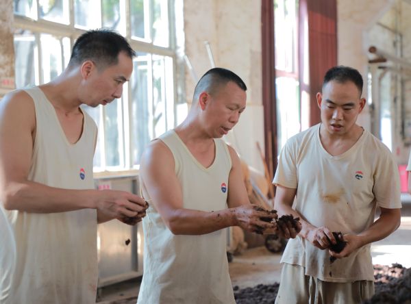 当然,邹良洪可不仅仅对徒弟认真负责,作为酒师,他对班上的每一个人都极其用心,对于生产工艺也始终怀揣敬畏之心。无论是在宽敞的晾堂上,还是在热气腾腾的酒甑旁,抑或是在弥漫着浓郁酒香的摘酒池边,都能瞧见他忙碌的身影。他还时常把大家伙召集在一起,共同讨论和总结生产过程中的点点滴滴,仔细查找不足之处。今年,在他的带领下,班组也取得了不错的成绩。