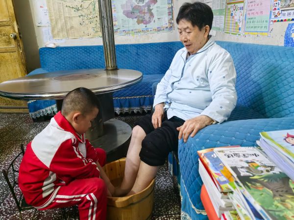 如今,蒋德云的小儿子主动承担起了为奶奶洗脚的任务。他的手法虽然生疏,但也用心学着妈妈的样子轻柔地搓洗着奶奶的双脚,仿佛是在延续着一段跨越时空的温情。奶奶看着孙子低头为自己洗脚的样子,眼里满是欣慰与感动。
