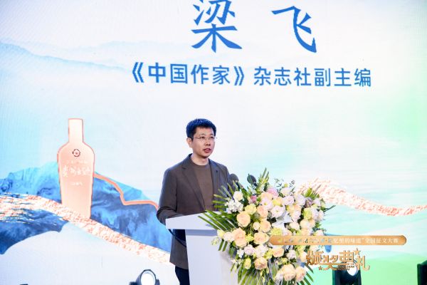 梁飞在致辞中对“贵州大曲·记忆里的味道”征文大赛的圆满落幕表示祝贺。他表示,《中国作家》杂志社与茅台合作举办这次征文大赛,旨在坚持为文学办活动,为大众提供创作机会和发表途径,同时大力宣传贵州大曲,实现“双赢”乃至“多赢”。这次比赛以文字表达对这片土地、茅台美酒及文学的敬仰,也抒发对美食、美酒、茶香的热爱。期待未来有更多诗人、作家,通过笔触将贵州与茅台的故事传递给世界,让更多人了解并爱上这片神奇之地。