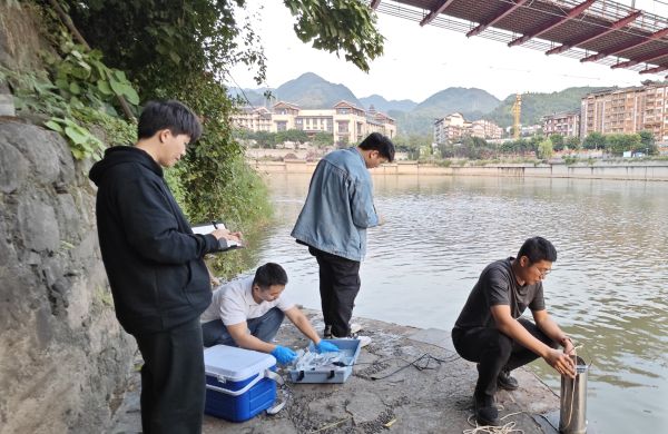 项目团队进行河水采样及快速检测