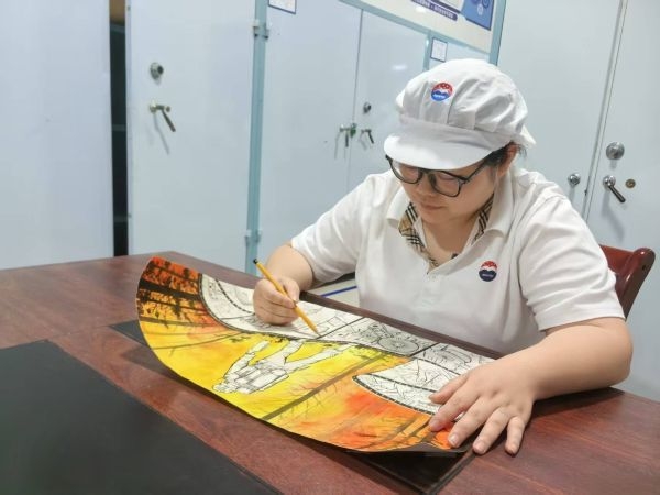 同时,车间的展示柜还琳琅满目地陈列着员工们的手工、绘画、纸雕、刺绣、剪纸等作品,这些作品既体现了对传统技艺的传承,又融入了现代审美元素,不仅点燃了员工对传统技艺的热情,更为车间注入了一股浓郁的文化气息。