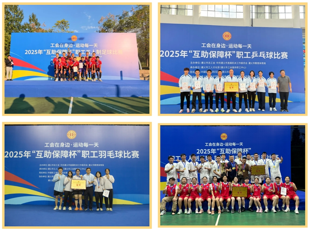 9月28日,遵义市2025年“互助保障杯”职工球类赛事圆满落下帷幕,来自遵义市直机关、企事业单位的115支代表队2000余名参赛选手以球会友、以赛聚心,展现出昂扬奋进的精神风貌和紧密协作的团队力量。茅台集团代表队凭借出色发挥,在足球、乒乓球、羽毛球、篮球四大项目中斩获多项荣誉,共夺得8个冠军,2个亚军,1个季军,以优异成绩为赛事画上精彩注脚。