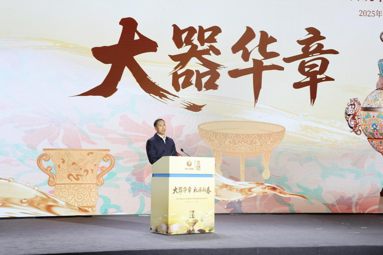 致辞中,刘世仲与现场嘉宾作了两个方面分享:一是以酒为媒,活化传统,让非遗点亮生活。茅台文创,是茅台文化的符号艺术化表达与产品具象化呈现。一方面,茅台工艺本身即是一部活态非遗史诗,深刻体现了中国传统酿造哲学中“天人合一”“节律共融”的智慧,与非遗“活态传承、生生不息”的精神高度契合。另一方面,茅台文化承载着中华礼俗的深厚根脉,其重要生产环节与端午、重阳等民俗活动天然呼应,共同构筑了中国人精神生活中的礼俗图谱。二是以酒为礼,匠心凝器,用品质致敬美好。本次茅台文创与景泰蓝携手,正是茅台“天人共酿”的哲学观与非遗“敬天惜物”的造物观的一次深度融合,二者共守“崇本守道、恪守精粹”的匠造精神;产品的合作不只是技艺的叠加,更是工艺精神的内在共鸣。让景泰蓝从殿堂珍品走入日常场景,正是茅台文创践行“工艺精神生活化”的生动体现;茅台文创与景泰蓝的此次交融,不仅是技艺的对话,更是心意的合鸣。