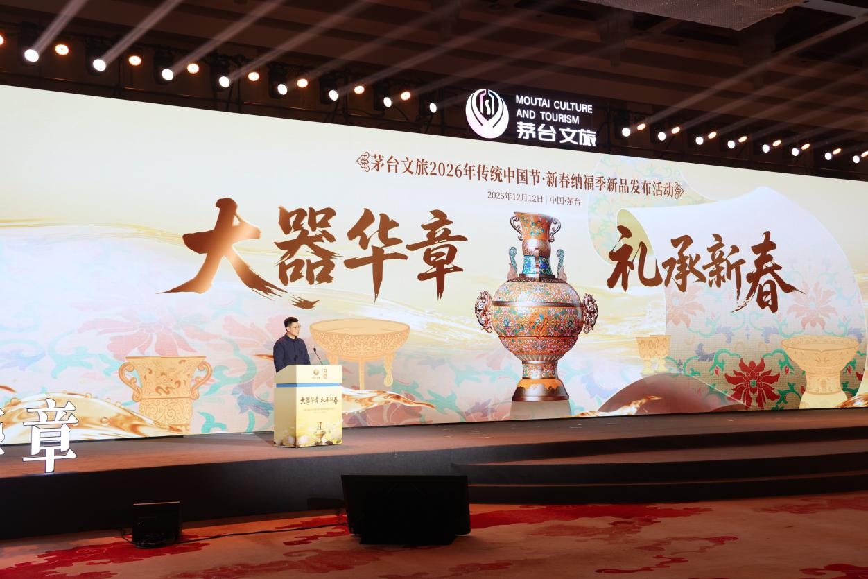 大器华章·礼承新春。12月12日,茅台文旅2026年传统中国节·新春纳福季新品发布活动在茅台大酒店盛大举行。领导嘉宾、文化大家、非遗传承人、合作伙伴齐聚赤水河畔,共同见证茅台文创2026年传统中国节·新春纳福季礼盒亮相。