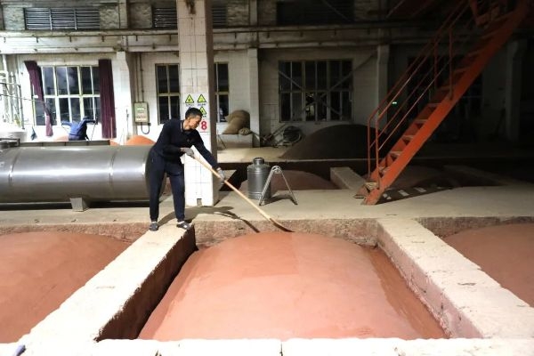 每天清晨,他总是最早到岗。穿上工装,便径直走向窖池群,开始一天的巡检。弯腰、俯身、触摸、细看……每一口窖池的窖泥紧实度、窖壁完整性、封口严密性,他都一一查验。哪怕发现一丝裂纹或一点松动,他都会立即处理,亲手抚平压实,那份专注与细致,仿佛在雕琢一件艺术品。