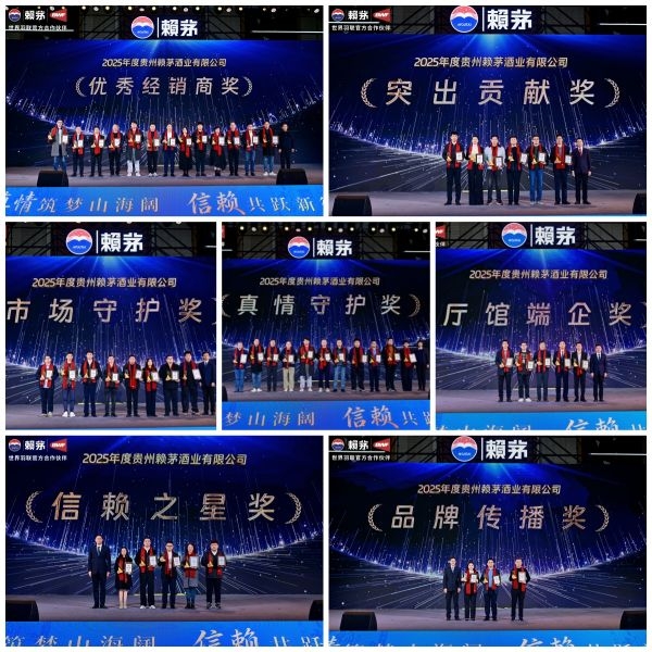 大会还举行了2025年度颁奖仪式,颁发了优秀经销商奖、突出贡献奖、市场守护奖、真情守护奖、厅馆端企奖、信赖之星奖、品牌传播奖等奖项,对在过去一年工作中做出突出贡献的经销商合作伙伴进行了表彰,勉励他们再接再厉,继续发挥标杆作用,秉承举信赖,敬真情的理念,携手共进,扎实工作,共同推进赖茅酒市场健康高质量发展,续写赖茅品牌新篇章。