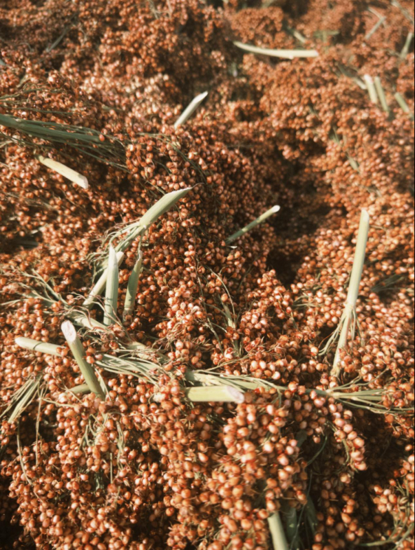 0.12毫米厚的种皮(普通高粱的3倍)与1.37%—2.0%的单宁含量,则是风味平衡的“关键变量”。厚种皮锁淀粉、通透气,便于微生物代谢;单宁含量精准卡在“风味阈值”,既不致香气寡淡,也不致酒体苦涩,最终转化为500多种香气前体物质。而18—22克的千粒重(比普通高粱小一半)与95%以上的颗粒均匀度,确保酒醅堆积紧密不板结,每粒高粱接触均匀温湿度与微生物,为基酒品质稳定提供“微观保障”。