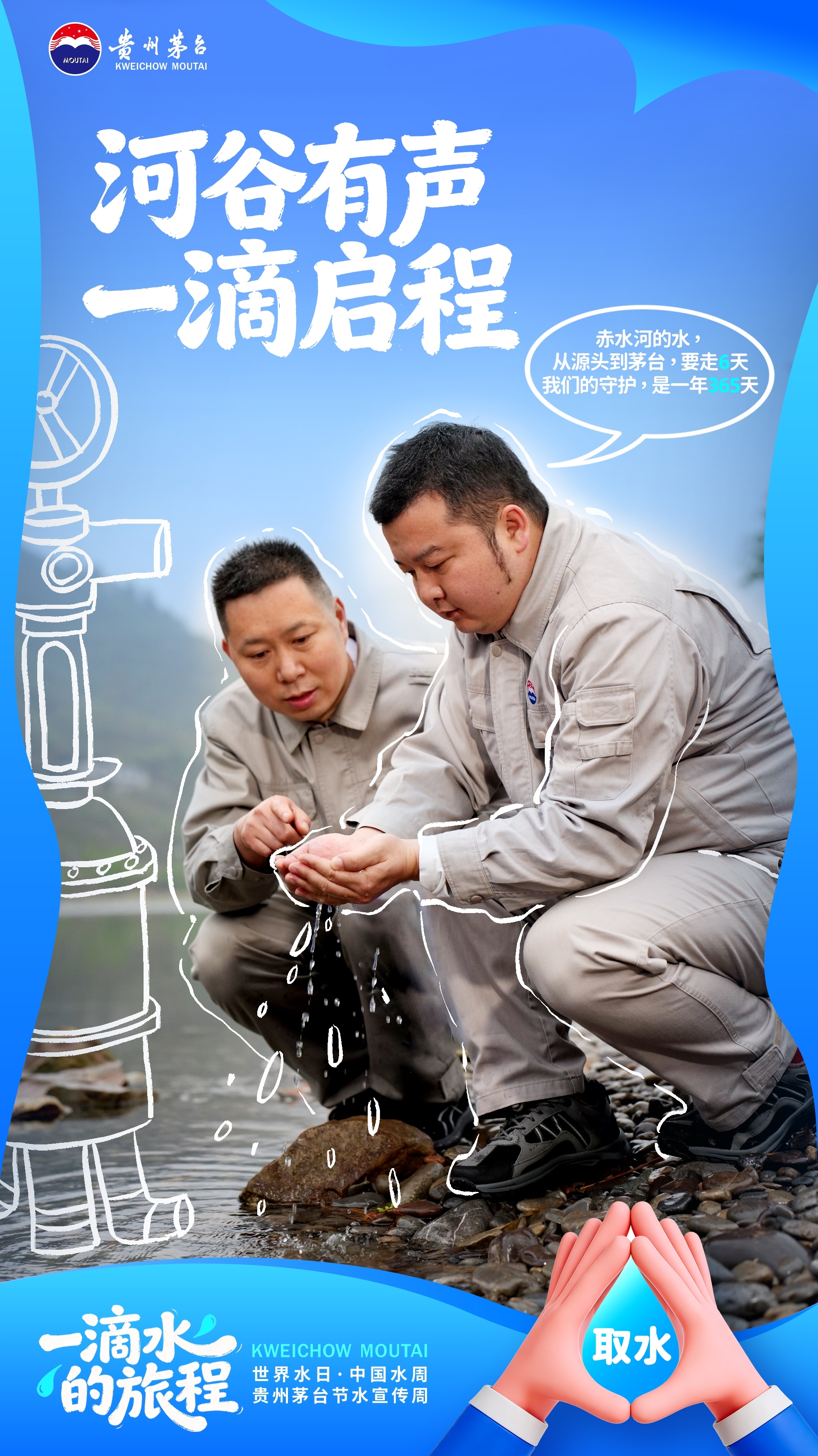 水是生命之源,也是茅台的根与魂。当水走完它的路,留在了酒里,也留在了人心里。“世界水日”“中国水周”,茅台人以实际行动诠释“节水优先、空间均衡、系统治理、两手发力”的治水思路,让每一滴水都物尽其用,让赤水河的清波永续流淌。